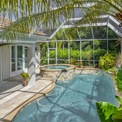 pool and spa. This home has it all with hurricane glass on all windows, extra protection with electric