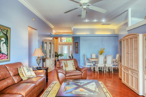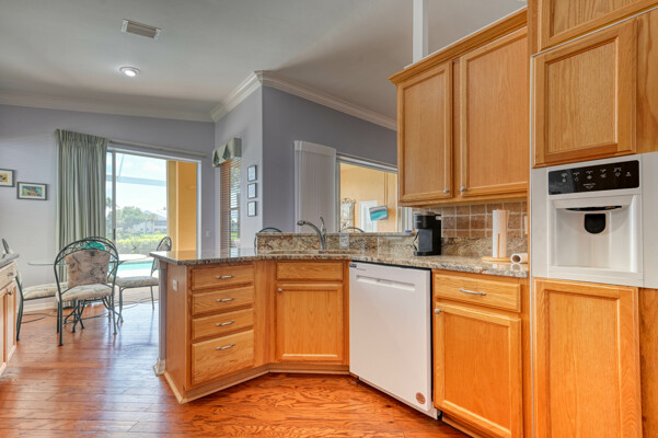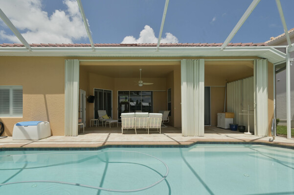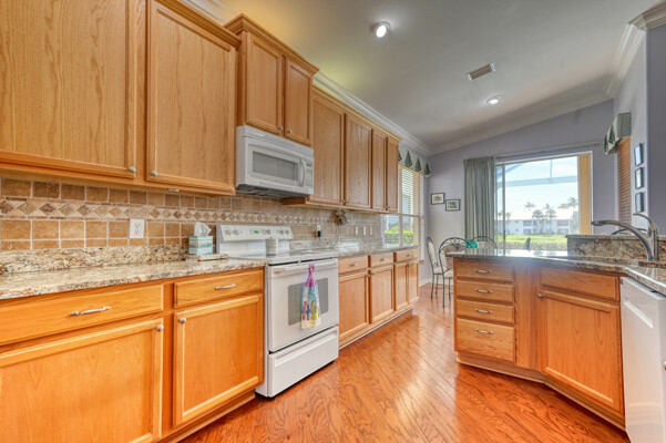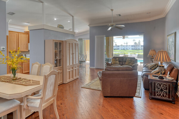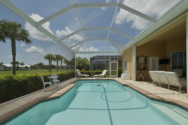 Charming villa pool home in the Crescent Cove neighborhood of Gulf Harbour Yacht & Country Club. Spectacular Golf course views & eastern exposure. This 3 bedroom 2 bath home has tile, carpet & engineered wood flooring. This recently renovated kitchen has a pantry with pull out shelving, Jenn Aire Refrigerator, granite counters, back splash & stainless steel sinks, eat at bar, breakfast room & dining area. The living room has vaulted ceilings & crown molding. Bedrooms feature plantation shutters while the master suite has sliders to lanai & pool area. Dual sinks & walk in shower in the master bath. Guest bath features tub/shower enclosure. Whirlpool Washer & Dryer, Trane Air Conditioning, new roof, new pool cage with super screen. Casual Florida Room with stone pavers & peaceful Picturesque view. With the additional purchase of the full golf membership, you will have access to Championship golf, World Class Marina, 8 lighted tennis courts, State of the Art fitness & wellness Center, waterfront restaurants, tiki bar & swimming pool. Social Activities & more. Conveniently located near: Sanibel-Captiva Islands Fort Myers Beach with its vibrant dining scene, nearby Medical facilities Shopping centers Southwest Florida International Airport & newly constructed Margaritaville on Ft Myers Beach. Consider your lifestyle, then Choose this Home.