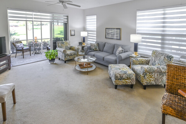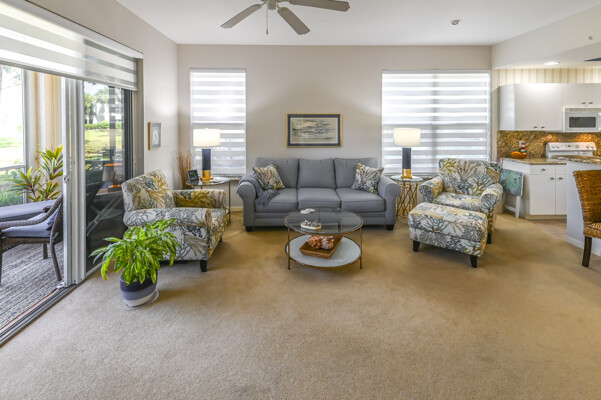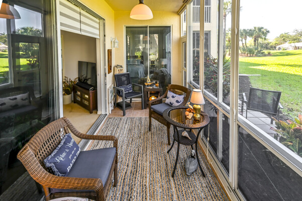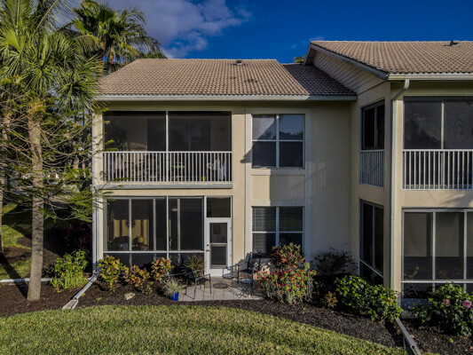 Absolutely beautiful condominium home in Longpond Village of Gulf Harbor Golf and Yacht Club. You will be only minutes from Ft Myers Beach and Sanibel Island. This single-story ground level end unit is wonderfully located and overlooks the seventh fairway and a lake. Make this your full-time home or a seasonal destination. Don't let this wonderful condominium home slip away. The end units offer additional windows adding more light throughout. New window treatments, and ceiling fans throughout. This floorplan features 2 master suites. Two full baths and two walk-in closets. All rooms have been updated with fresh paint and or wallpaper. The kitchen also has been updated with granite counter tops and back splash areas. Patio off Lani with all new landscaping. Lani Windows slide open and are screened. Leave the Lani windows closed for complete air conditioning on hot days. Lani also has roll down sunshades. Covered parking and two large storage units. New AC in 2021; new screened front door. 186 slip deep water Marina with slips available for lease or purchase. All amenities available with membership purchase.