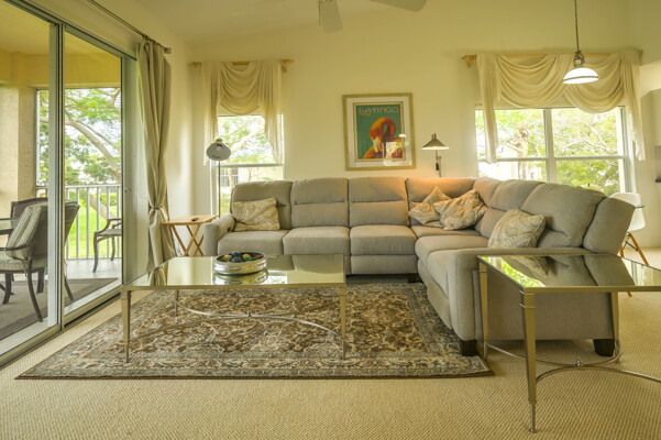 Absolutely beautiful condominium home in Longpond Village of Gulf Harbor Yacht & CC Club. You will be only minutes from Ft Myers Beach and Sanibel Island. This single-story second floor end unit is wonderfully located and overlooks the seventh fairway and a lake. Make this your full-time home or a seasonal destination. Don't let this wonderful condominium home slip away. The end units offer additional windows adding more light throughout the unit. This floorplan features 2 master suites. Two full baths and two walk-in closets. The kitchen also has been updated with solid surface counter tops and new appliances. Lani also has roll down sunshades. New metal roofs are currently being installed. Covered parking and large storage unit. 186 slip deep water Marina with slips available for lease or purchase. Many of the amenities are available only with membership purchase.
