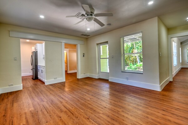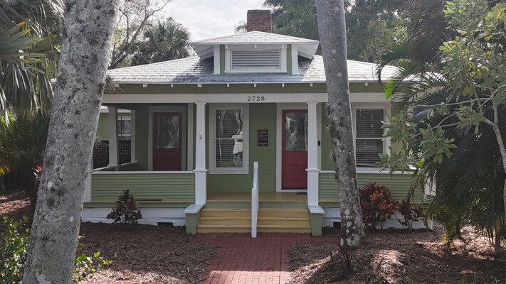 1915 HISTORIC BUNGALOW, FULLY UPDATED. More than 1800 sq ft w/3BR/2BA under one roof, situated on an oversized lot in the Dean Park Historic District. Mature trees, lush landscaping & paver-stone stone patio area enclosed by a privacy fence create your own Shangri-La in the heart of the city. The home was affected by Hurricane Ian, but the remediation preserved the charm of the original woodwork & brickwork--including a wood-burning fireplace in the entry room--but added the comfort & convenience of updated bathrooms & kitchen. With wood cabinets & granite countertops, the kitchen is centrally located between the formal dining room & the large family room, making the home perfect for entertaining, inside or out. Huge primary suite. Plenty of closet space. A wrap-around front porch & two side porches invite you to relax & enjoy the tranquil environment. Huge attached garage w/bright workshop, perfect for people who tinker or garden. Alley access. Plenty of parking. Stroll the quiet pet friendly streets to absorb the historic envelope of Dean Park. Add a few steps to reach the downtown River District with its plethora of restaurant & entertainment choices, plus a river front park. Enjoy