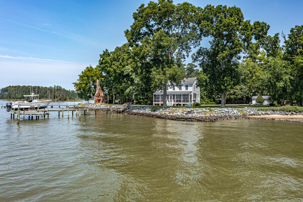 Best described as a charming Circa 1900 colonial home sitting on the shores of the Rappahannock River with wide wonderful views, southern exposure for summer breezes and beautiful special sunsets on the river that define this property as a very special place. Inside and out, you'll enjoy relaxing under the old shade trees, watching the boat traffic on the river and a large dock for boating, swimming, kayaking or just dangling your feet in the water. This Circa 1900 home has tall ceilings and center hall design with open living-kitchen area, family room on main level, across hall from kitchen is a nice bar area for entertaining with a separate bunk style bedroom, powder room and laundry area. Second level offers two guest bedrooms with shared bath together with master bedroom with bath. The home was raised in 2011 with a new brick foundation installed. A large screened porch on waterside is perfect for meals and enjoying family and friends A detached garage is also on property. Plenty of room for pool or adding addition to house. Clustered it large trees and located next to the historical site remains of the original Towels Point home that dates back to the early 1700's is an ideal setting for this home. If you enjoy the charm of the "old" character along with the modern conveniences, you will certainly love this property and home. Water depth at dock to be measured by new owner to their satisfaction. Hope to see you soon!